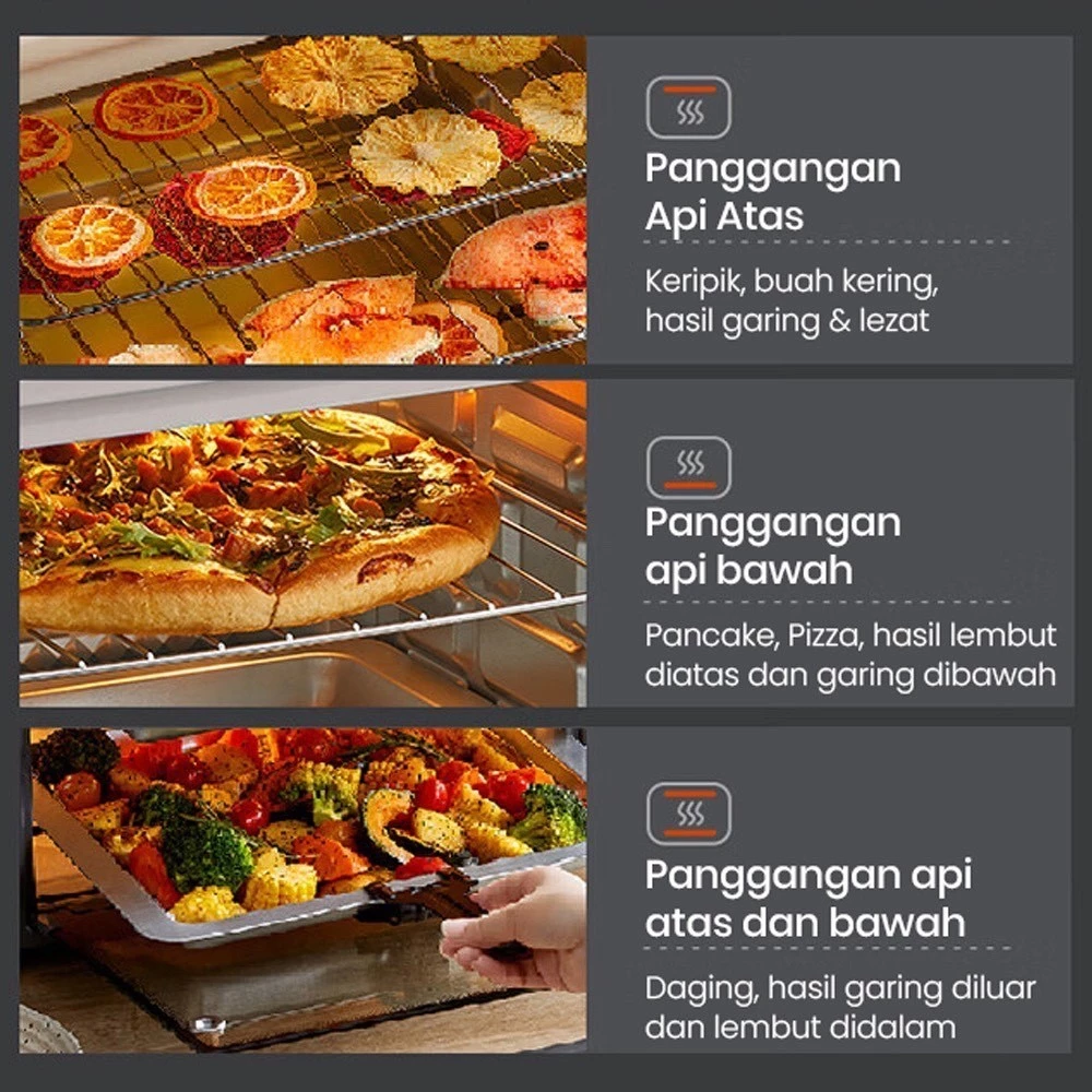 3. Tombol Pengatur Tiga Mode Pemanasan: Mendukung pengaturan pemanasan atas, pemanasan bawah, atau pemanasan atas dan bawah secara bersamaan.