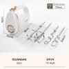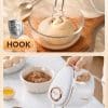 Termasuk “WHISK” (pengocok jaring) dan “HOOK” (pengaduk spiral). WHISK dirancang untuk mengocok krim, adonan telur, dan adonan kue yang ringan; HOOK unggul dalam menguleni adonan kuker, adonan pizza, dan adonan kental. Dua desain profesional dalam satu alat.
