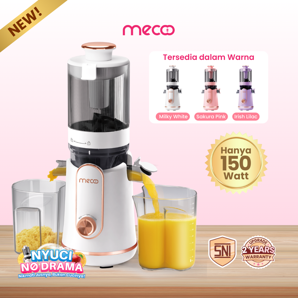 Dengan teknologi tekanan tiga tahap, Slow Juicer Pro Mecoo terbaru mampu memeras hingga 99% jus murni — hampir sempurna!